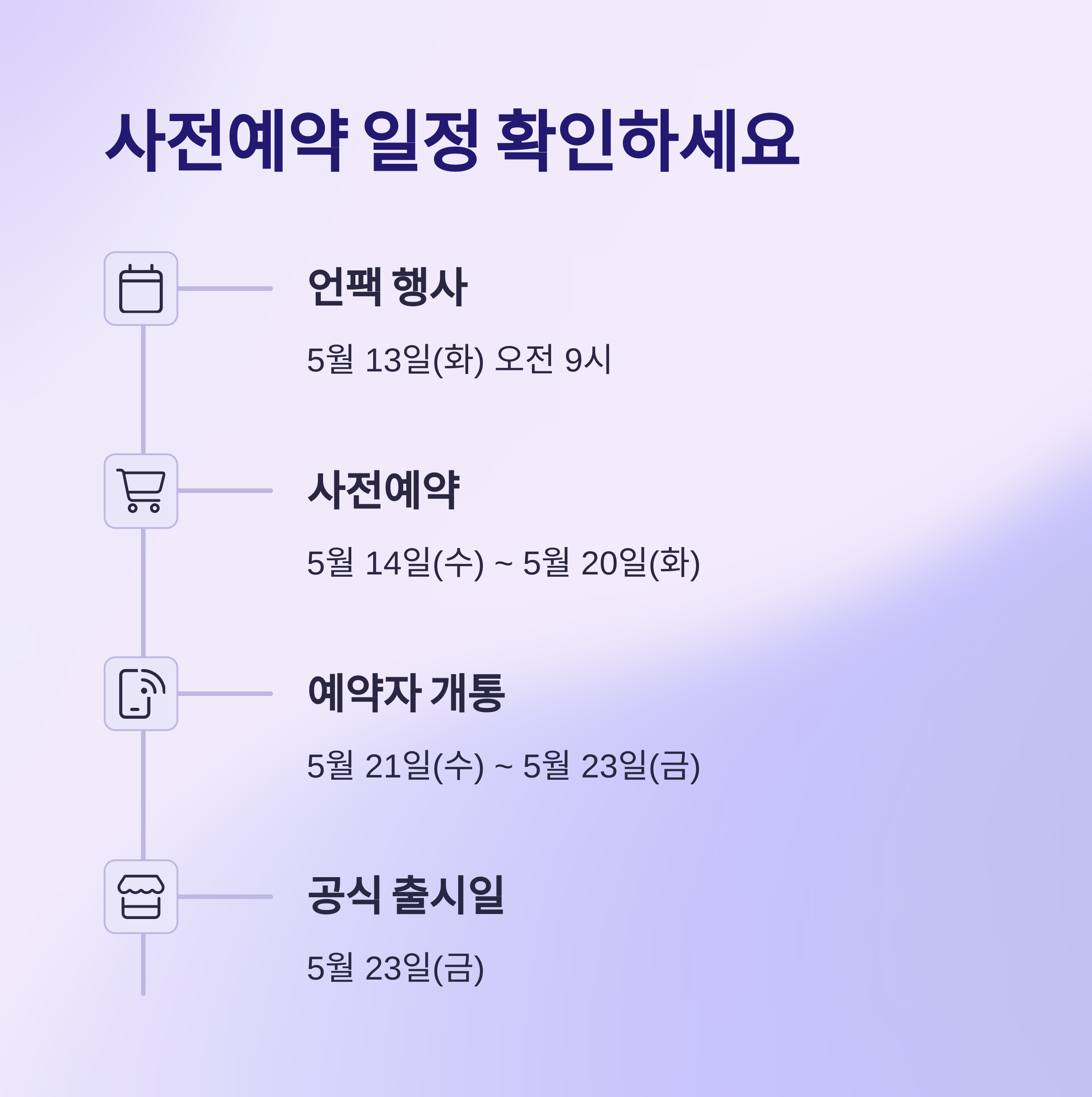 | 예약자 개통 | 5월 21일(수) ~ 5월 23일(금) |