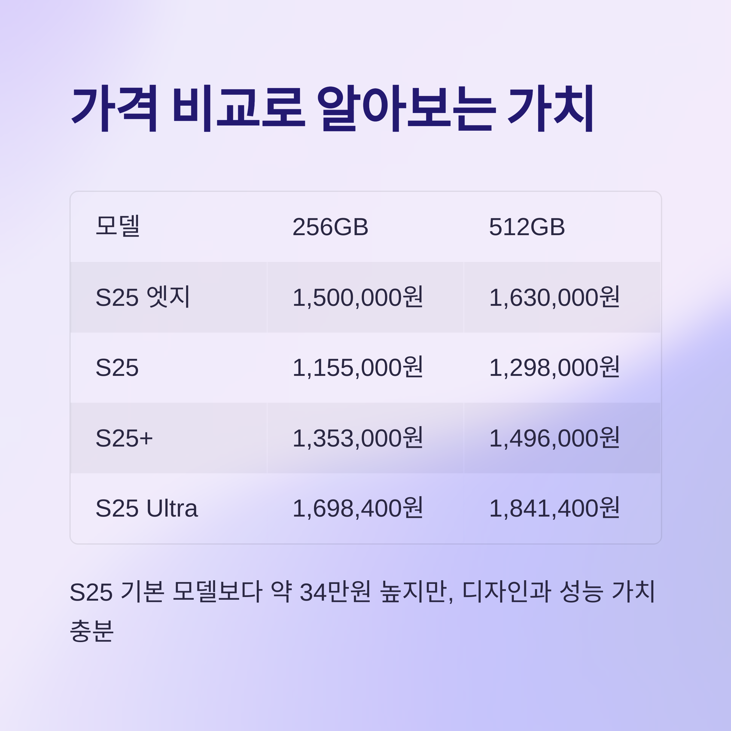 이는 S25 기본 모델보다 약 34만원 더 비싸지만, 디자인과 성능을 고려하면 충분한 가치를 제공합니다.