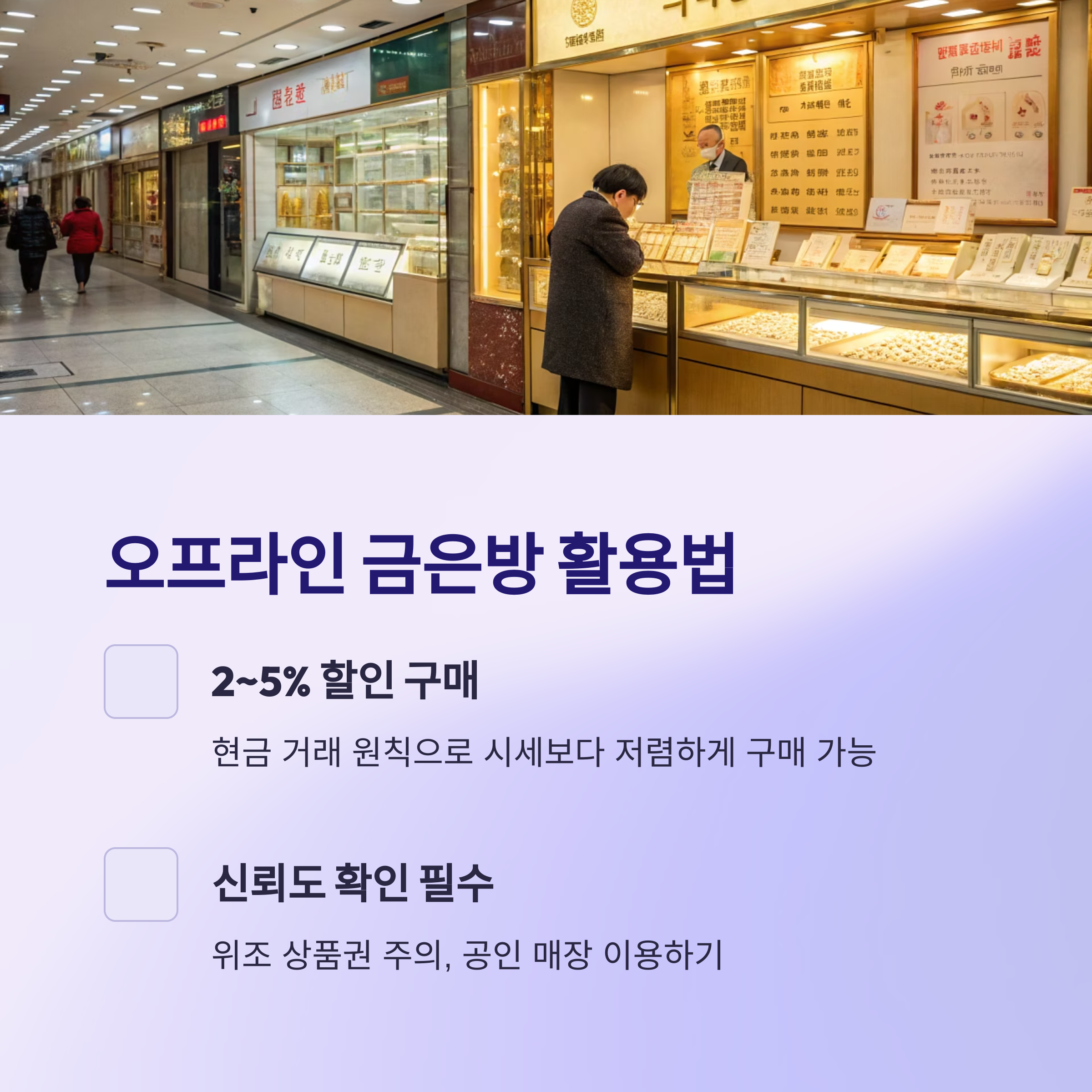 가장 보편적인 할인 구매 방법은 지역 금은방이나 상품권 전문 판매처를 이용하는 것입니다.
