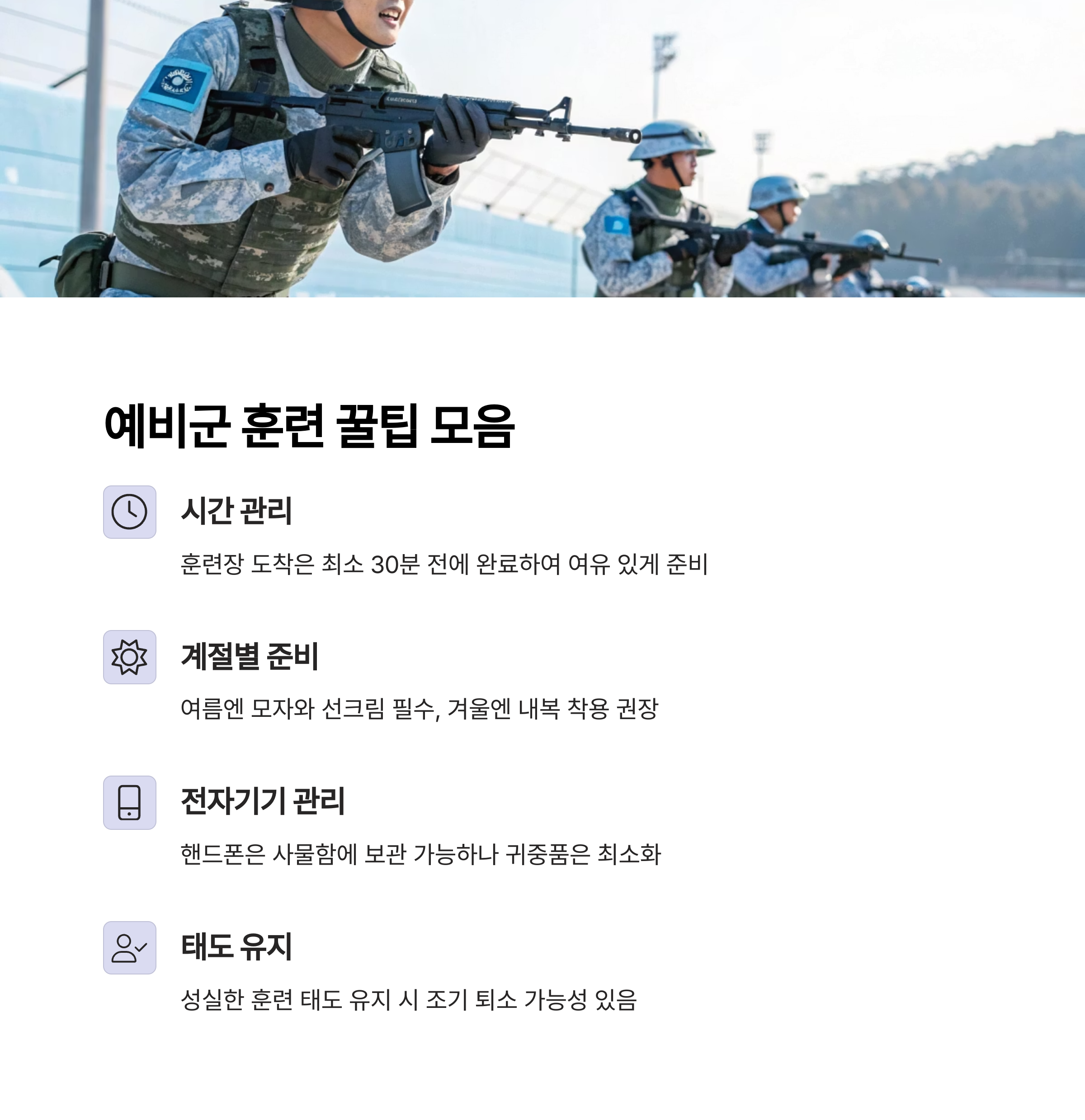 정확한 일정 확인과 준비물 챙기기로 스트레스 없이 훈련을 마무리하세요!