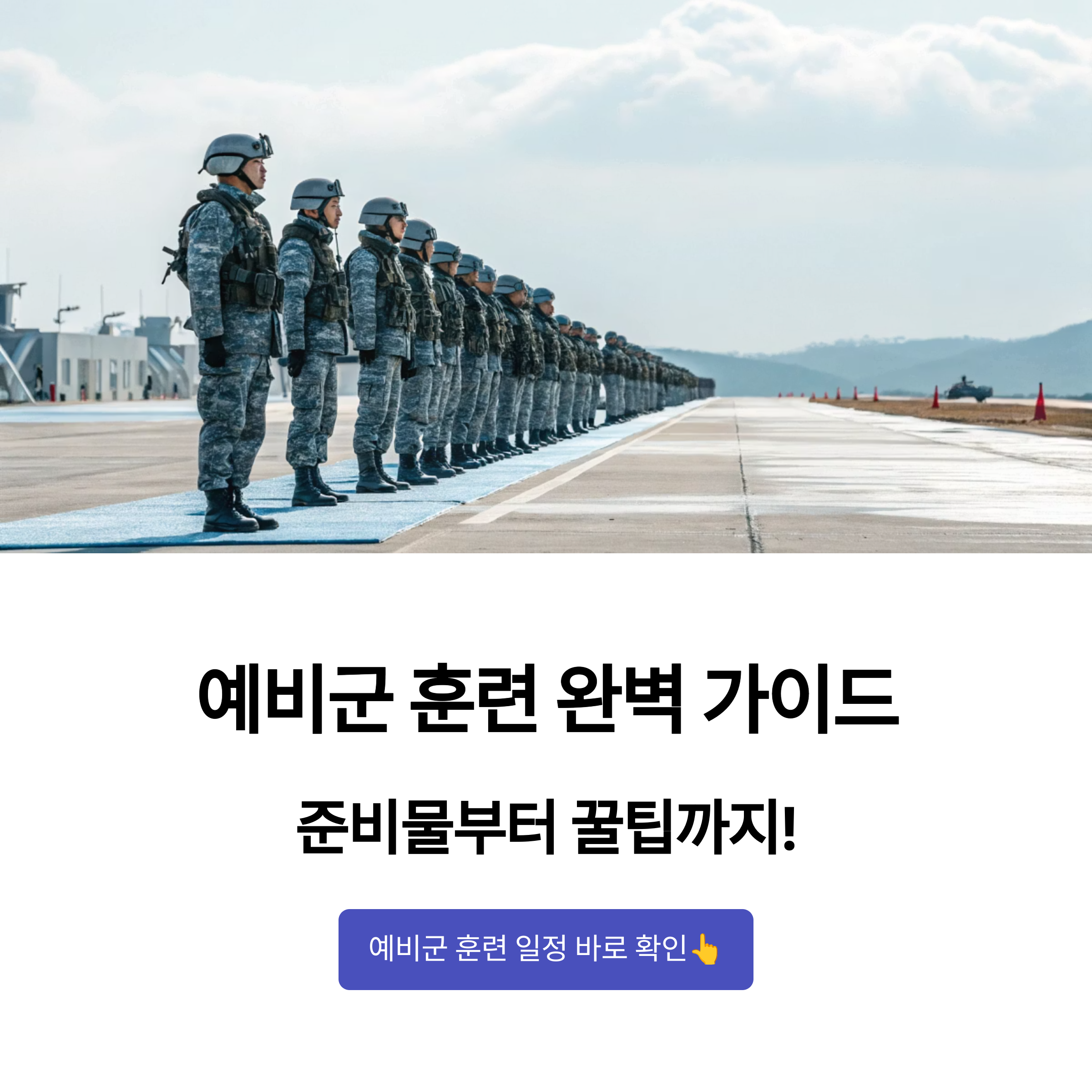 예비군 훈련 일정을 확인하고, 준비물부터 복장, 연기 방법까지 한눈에 정리했습니다. 빠르게 예비군 훈련 정보를 원하시면 아래 버튼에서 확인하세요.
