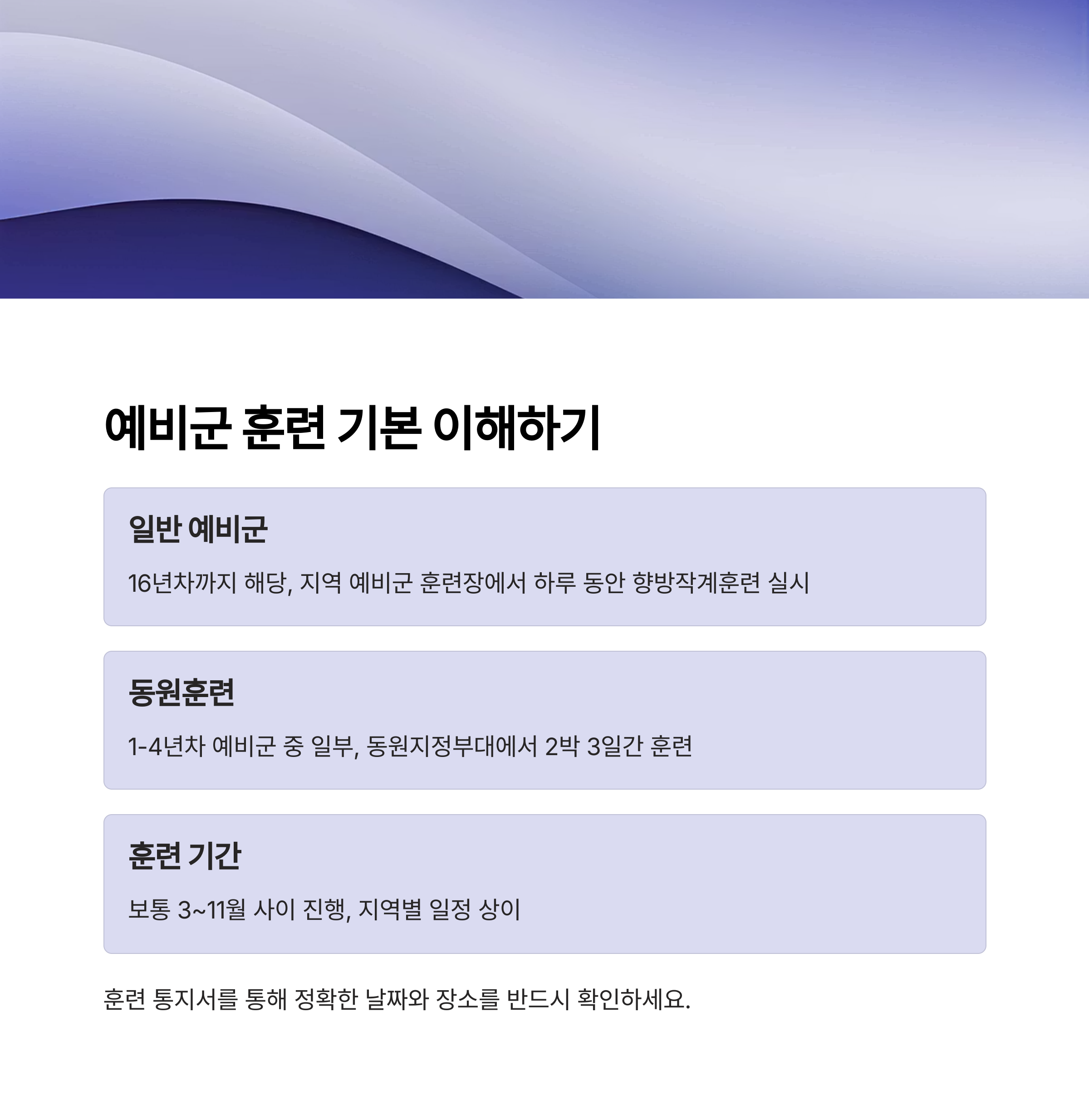 훈련은 보통 3~11월 사이에 진행되며, 지역마다 일정이 조금씩 다를 수 있으므로 훈련 통지서를 통해 날짜와 장소를 반드시 확인해야 합니다.