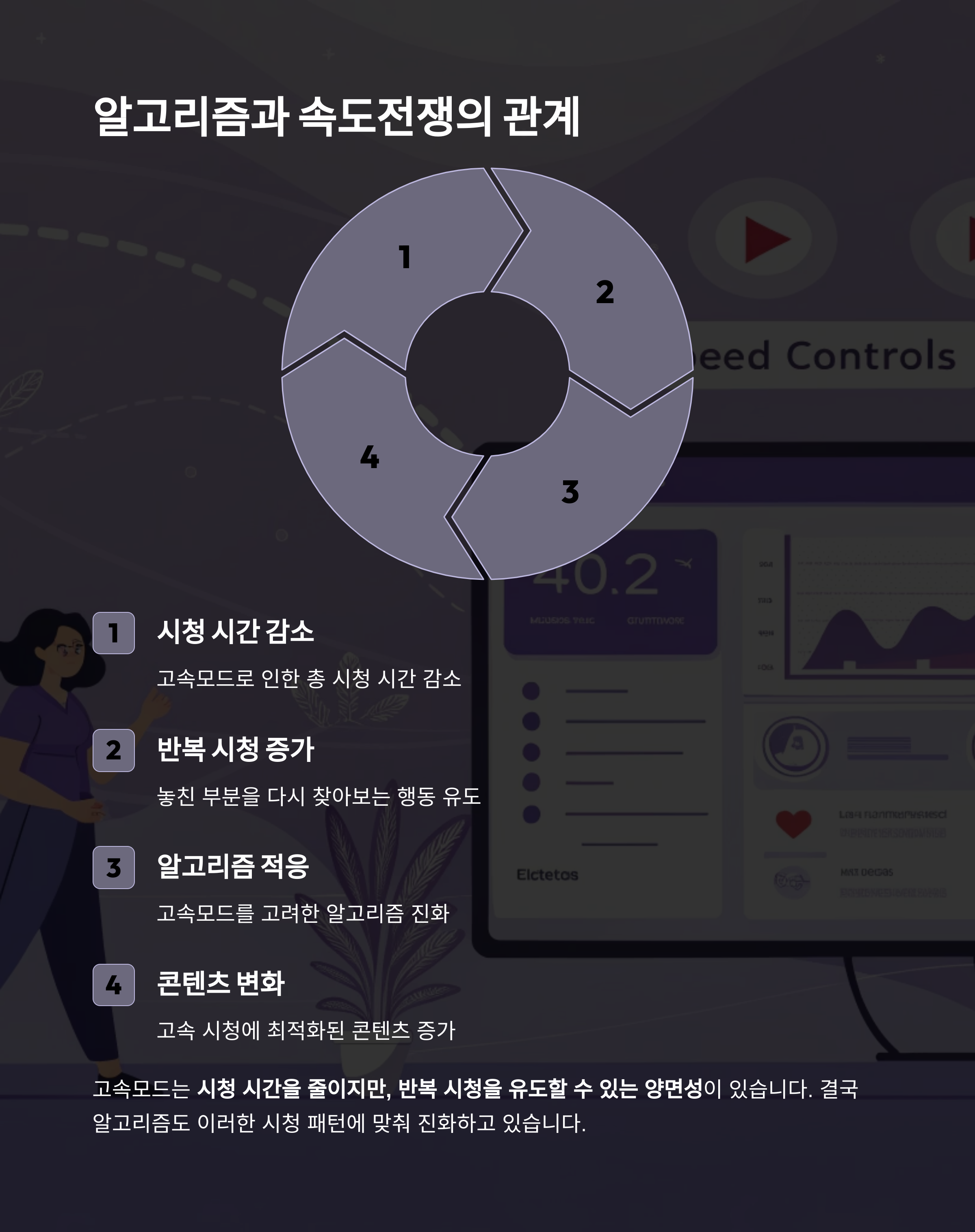 고속모드는 시청 시간을 줄이지만, 반복 시청을 유도할 수 있는 양면성이 있습니다.