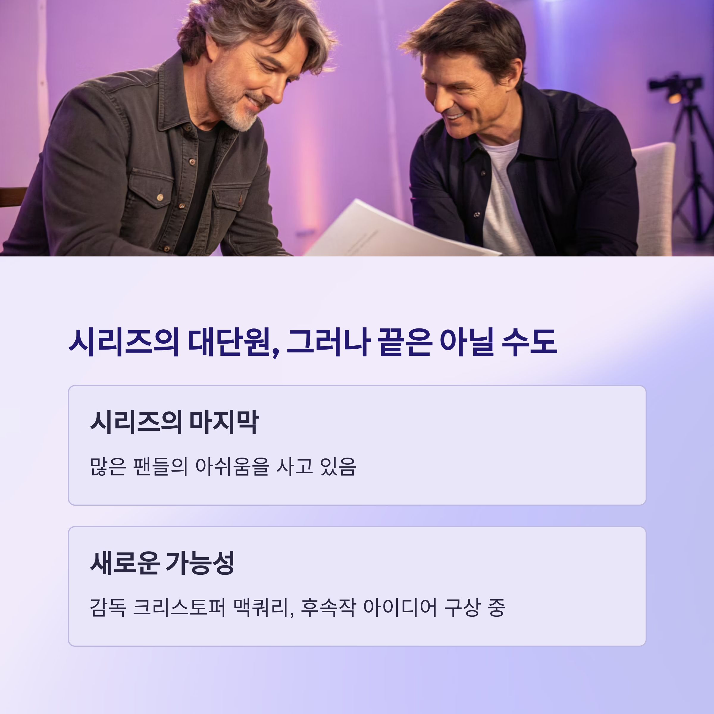이번 작품이 시리즈의 마지막이라는 점에서 많은 팬들의 아쉬움을 사고 있지만, 감독 크리스토퍼 맥쿼리는 2023년에 이미 후속작에 대한 아이디어를 구상 중이라고 밝혔습니다. 따라서, '미션 임파서블' 시리즈는 새로운 형태로 계속될 가능성도 열려 있습니다.