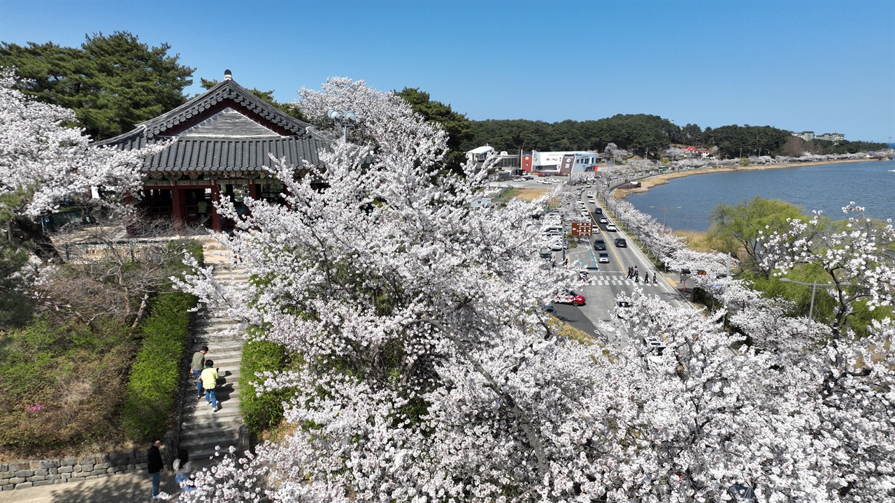 - 강릉 경포대: 동해안 바다를 배경으로 벚꽃을 감상할 수 있는 명소