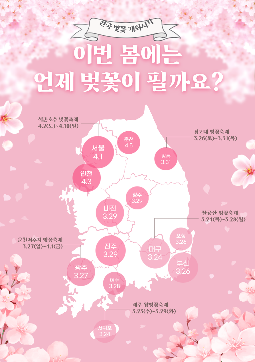 📅 주요 지역별 벚꽃 개화 예상 일정